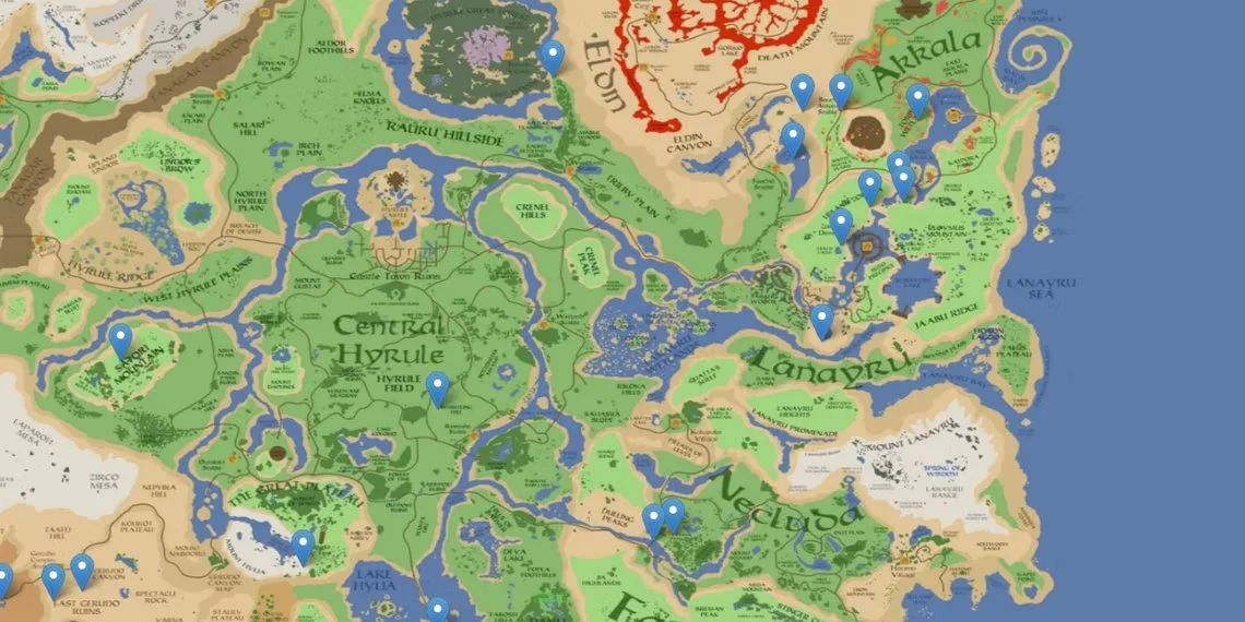 The map of Hyrule from The Legend of Zelda: Breath of the Wild.
