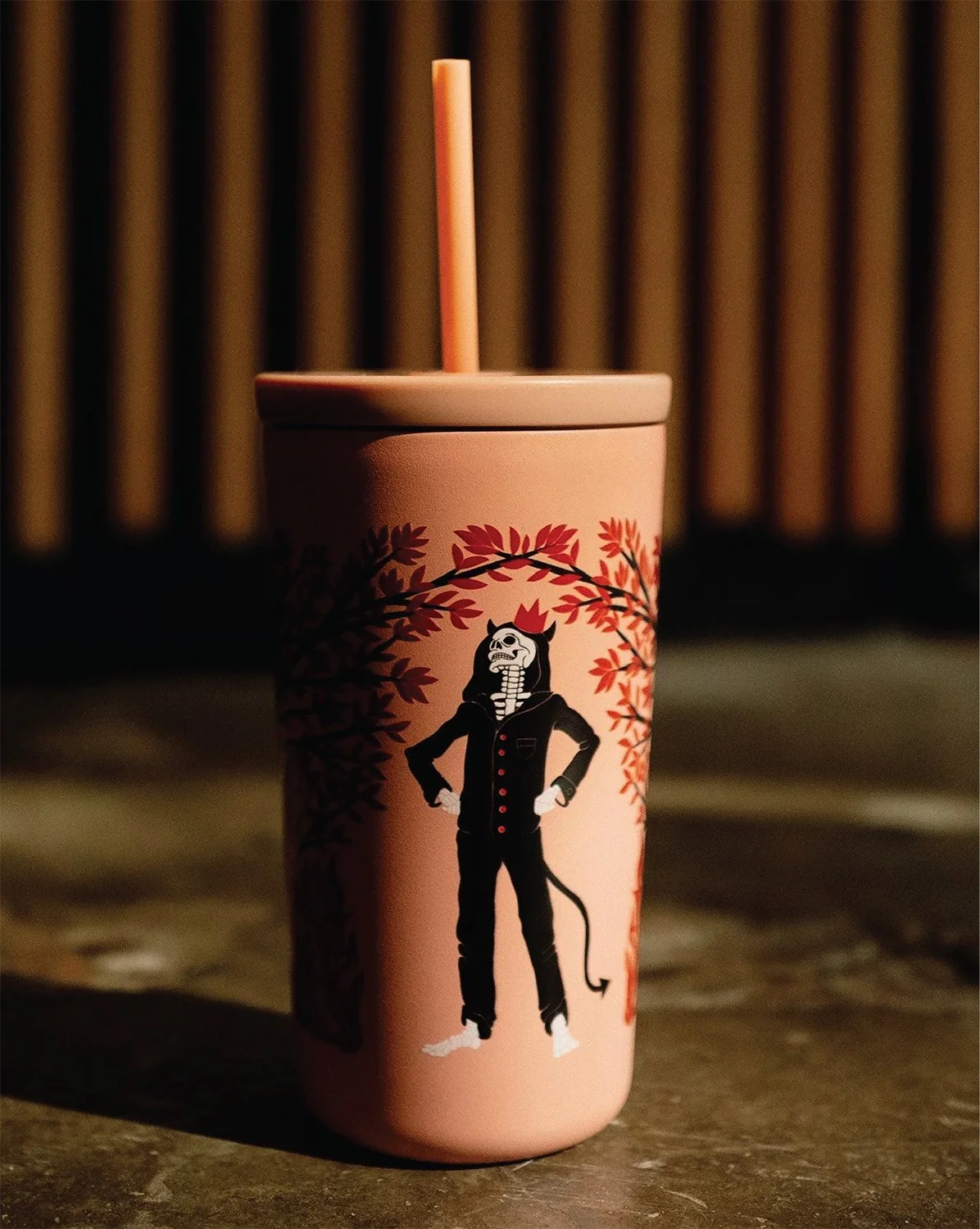 For our first collaboration, the inspiration was Maurice Sendak’s beloved Where the Wild Things Are. The plan was to work in imagery from the story but in a style that was unique–a nod to the book, rather than imitating Sendak’s illustration style. We wanted to evoke Max’s mischievous personality, but with a more adult feel. Instead of a kid, a skeleton, and instead of Max’s beast jammies, we ended up with a little play on words: our skeleton donned satin pajamas with devil horns and a tail. Thus, Satan Pajamas became our theme.
