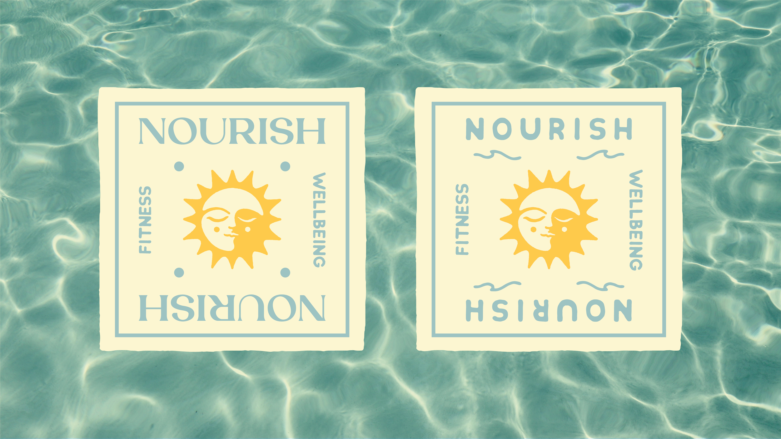 The Nourish philosophy is that fitness, nutrition, and self-care is for everyone and doesn’t need to fit the mold we see at corporate gyms and diet culture. To express this, we wanted to highlight softness through visual design. Story was huge for this brand: the founder’s journey from high-intensity, competitive fitness to a more loving, mindfulness inspired approach to wellbeing needed to be reflected in the brand identity. For the logo, we needed something that conveyed a meditative feeling without relying on the usual wellness design tropes, and that would be able to represent the variety of offerings.
